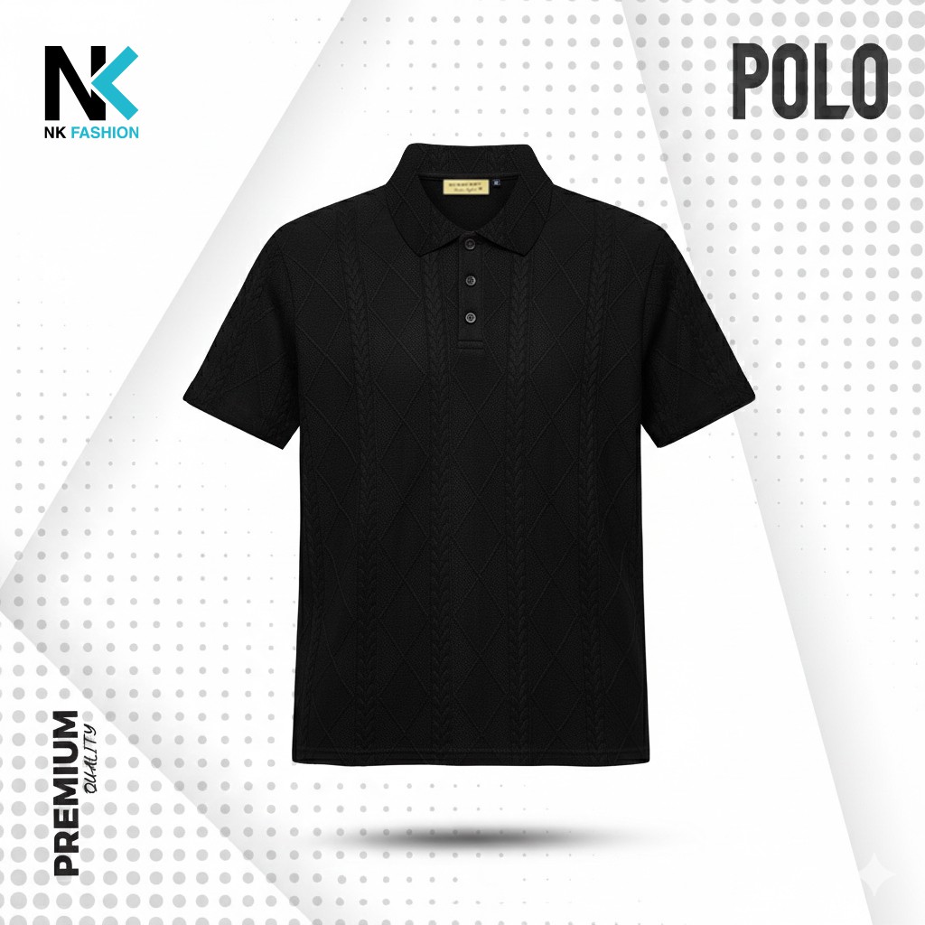Trendy polo shirt (Black) - 1007